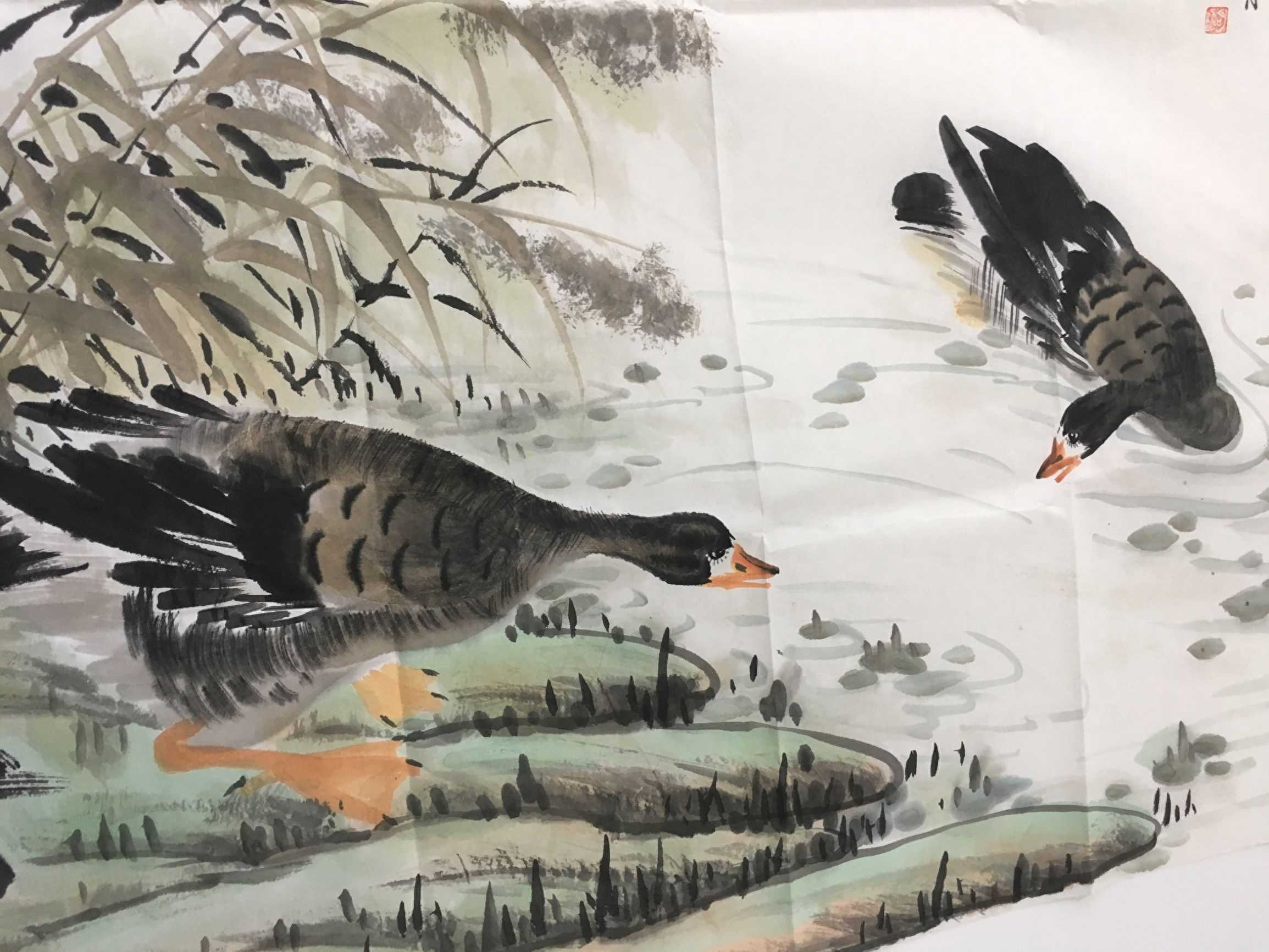 邱明功,字江北雁公,斋号瑞明斋。山东青州人,年幼酷爱书画,1975年知青下乡期间,举办过阶级教育展览,1976年入伍从事电影放映宣传绘画工作,1999年-2O12年先后结业于山东省美协培训中心、花鸟创作班,在全国美展中多次荣获金银奖。现居北京大学艺术学院高研班贾广健导师工作室,身受霍春阳、贾广健导师的亲临传教,并授课于范扬、史国良、刘曦林等导师指教。