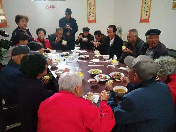 在晚宴上,社区工作人员们精心准备了特色美食“靖远羊羔肉”,老人们吃得满脸欢喜,让社区居民感受一份家的关怀和温暖。