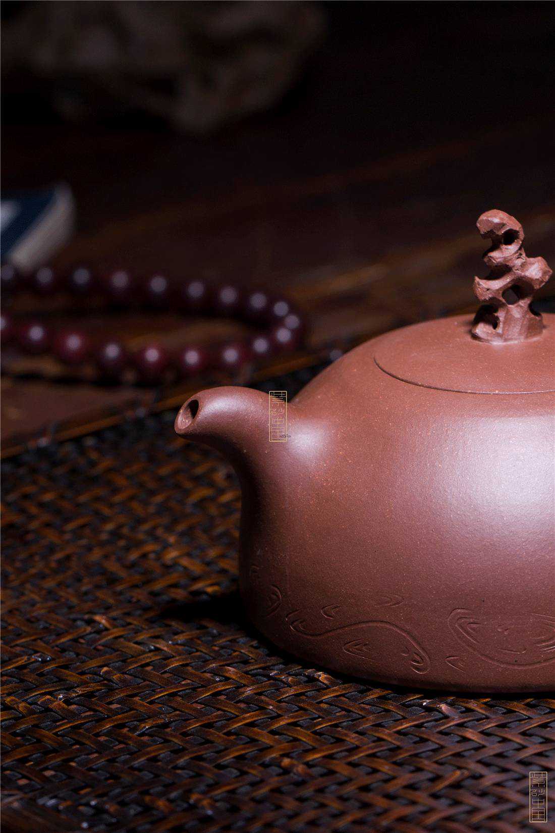 壶身为半圆形,沉稳而铿铿然,意境上畅神怡、大度豁达,下部刻画水纹,强调委婉清澈、可意会而不可言传之境,包含了似真非真的含义。