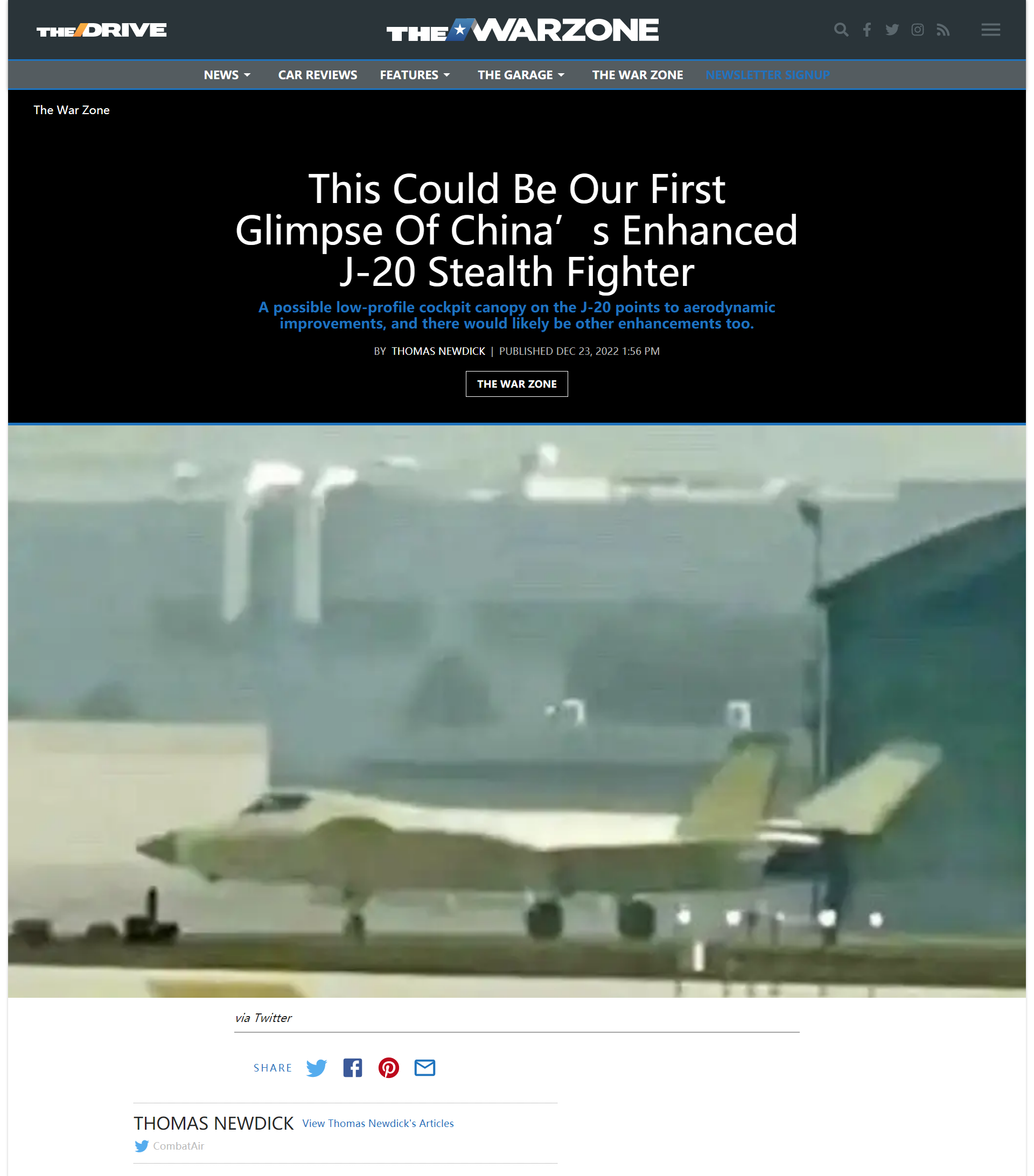 外媒猜测:到底哪个才是正确的?美媒也对这架机背突起的新机非常感兴趣,早在12月23日,TheWarZone上就有一篇专门分析这个机背突起的设计意图,有几个观点还是挺有参考价值的。
