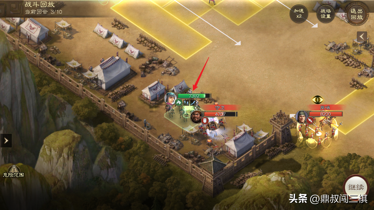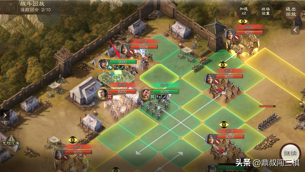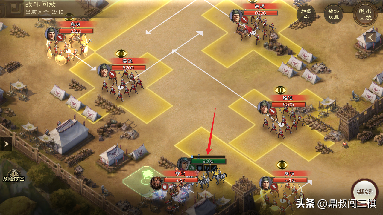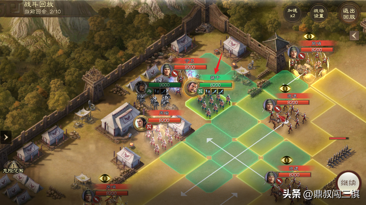 由于本关无需战斗,只需避开巡逻士兵的监视范围即可,因此通过本关卡主要选择能够位移的武将和战法。