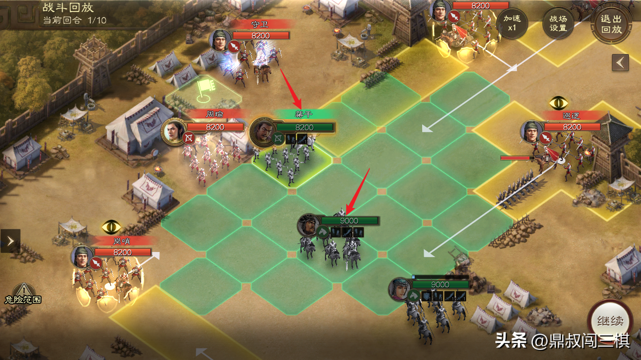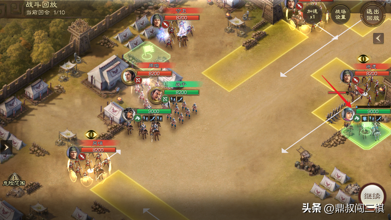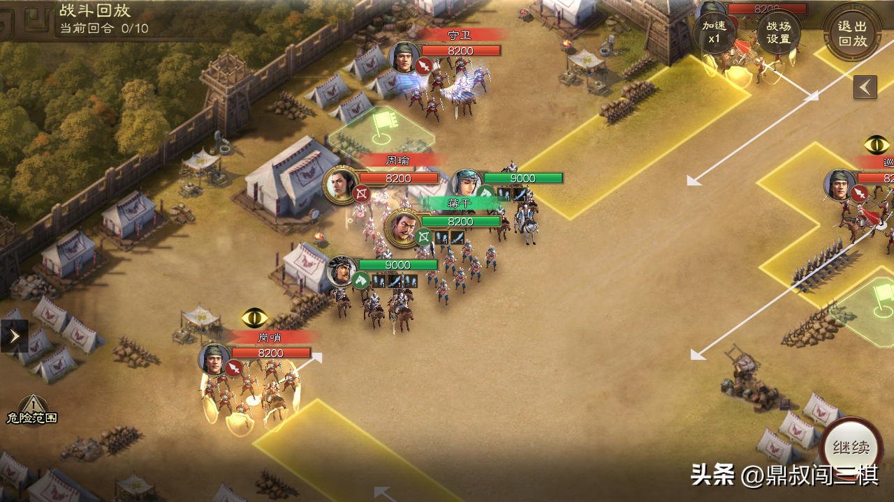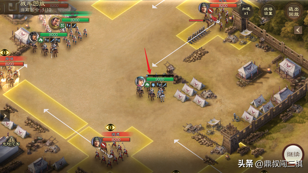 由于本关无需战斗,只需避开巡逻士兵的监视范围即可,因此通过本关卡主要选择能够位移的武将和战法。