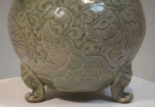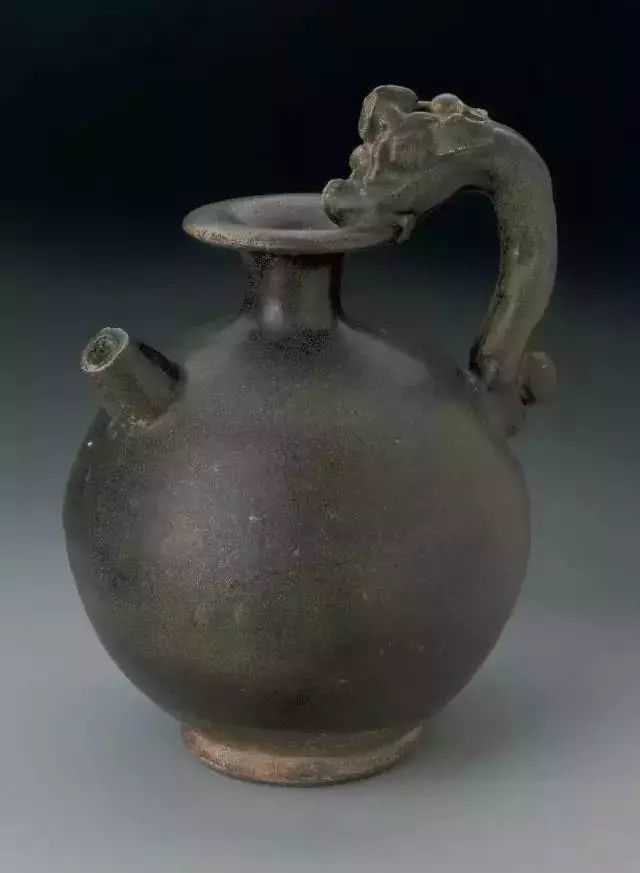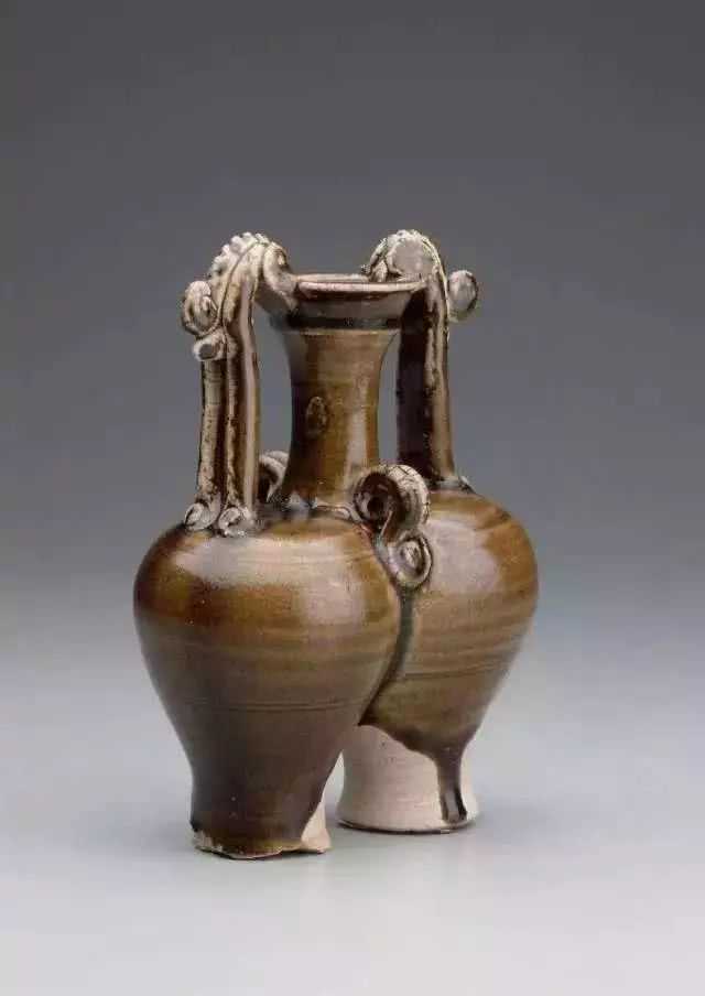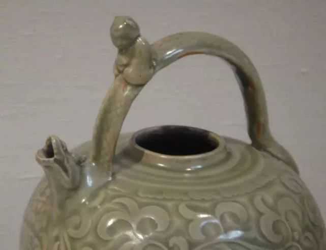 22、五代耀州窑深剔刻牡丹纹双流壶