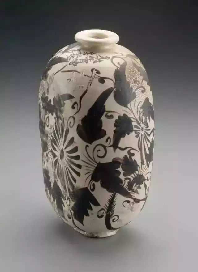 30、宋磁州窑黑釉剔牡丹纹梅瓶