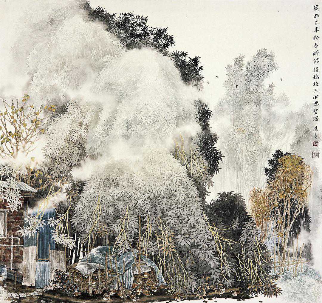 中国艺术,诗画同源。观之叶其青作品,使人想到王孟笔下清婉恬静的诗境,淡丽色彩架构而成的空间,荡漾着纯粹自然的天真,不媚世俗,澄观内心。这也是他的笔墨最令人触动的地方。