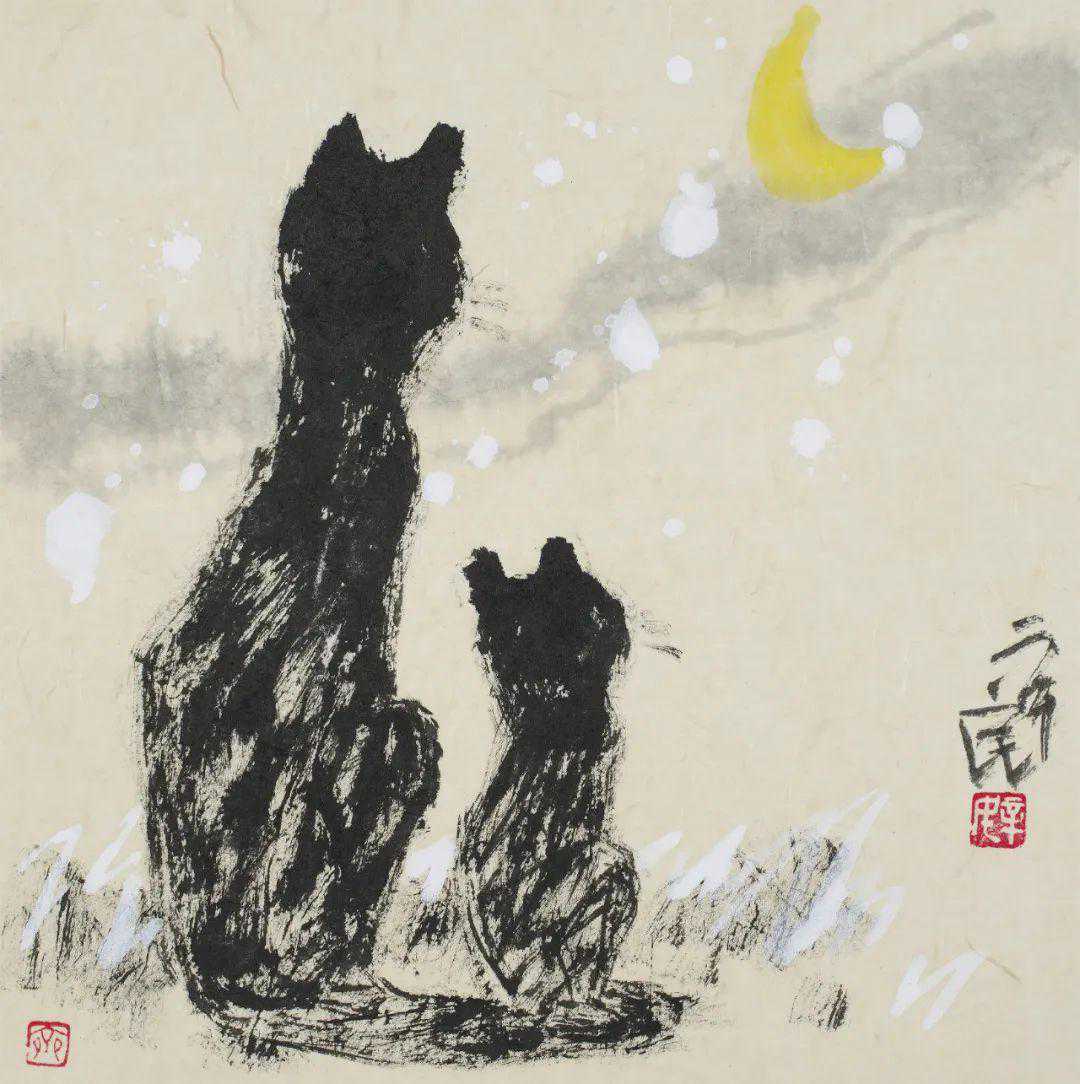 齐辛民画猫堪称一绝,简练的笔触、拙朴的造型,有别于传统花鸟画的高古、典雅,多了几分生趣和可爱,萌翻众人,80高龄硬是画出了“80后”“90后”也喜闻乐见的花鸟,这一点尤为难得。