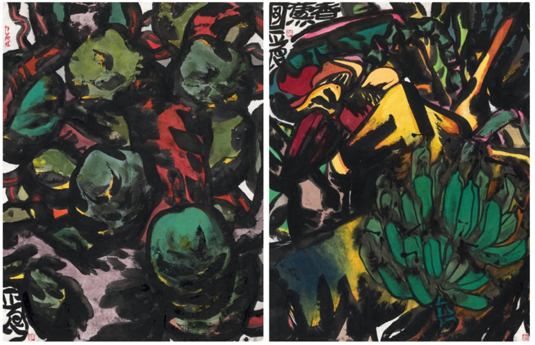 周正良硕果中国画82cm×64cm×2广东