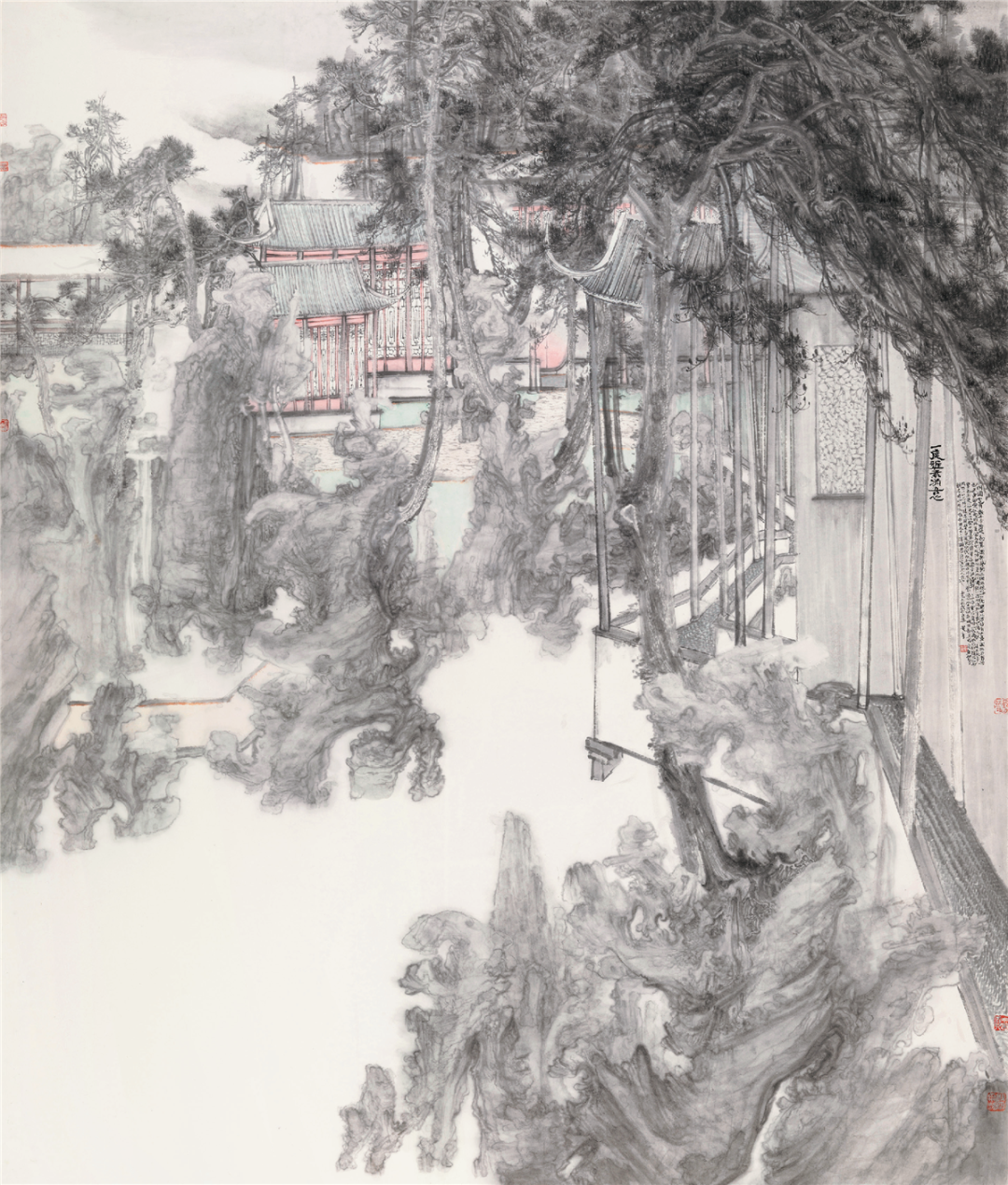 周石峰烟锁晴光中国画210cm×205cm北京