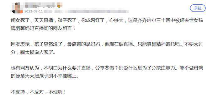 这些人可能连事情经过都不清楚,也并不关心死去的孩子,也不关心失去孩子的魏羽馨一家该如何生活。