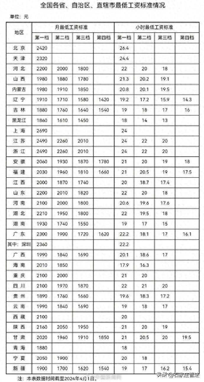 1、31省份最低工资标准公布近日,人社部官网发布了全国各省、自治区、直辖市最低工资标准情况(截至2024年4月1日)。其中,上海月最低工资标准2690元,为全国最高。北京小时最低工资标准26.4元,排名居首。(@中国新闻网)