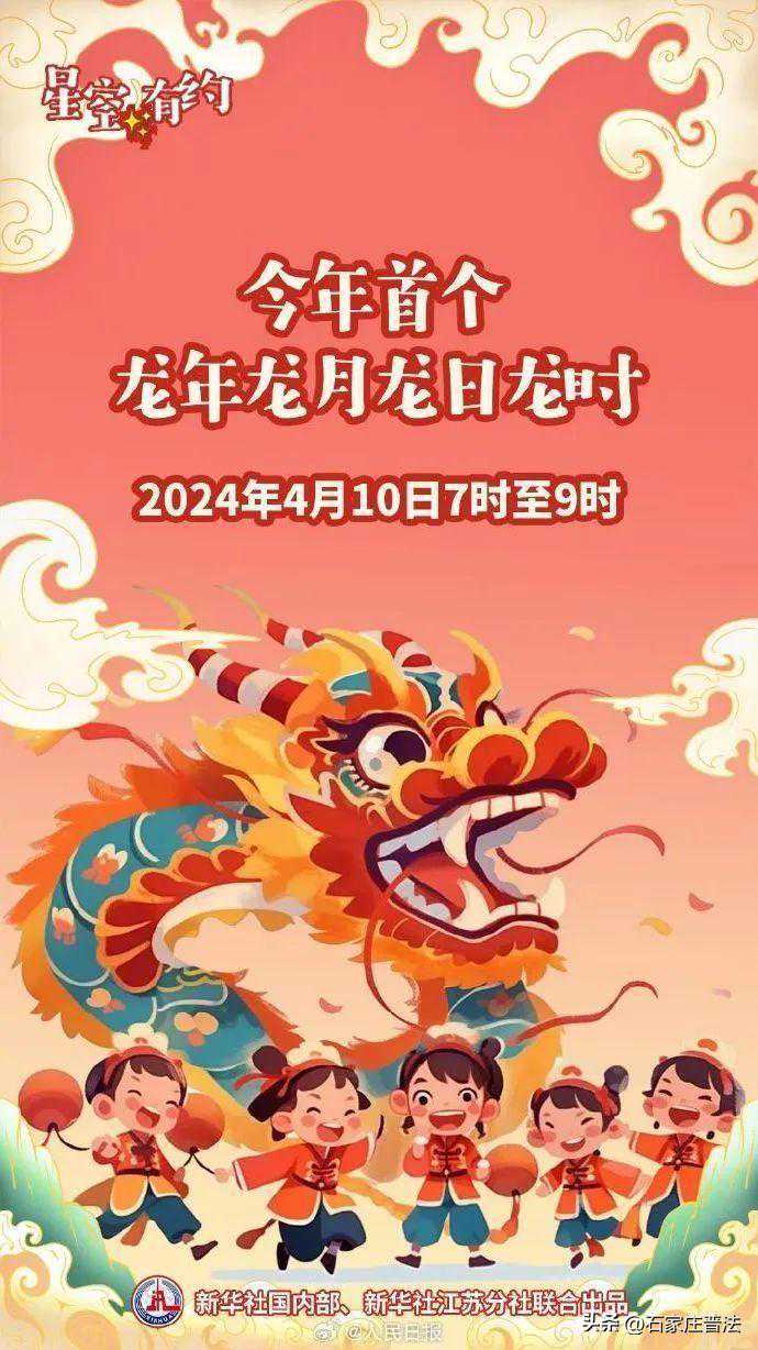 4、10日将迎龙年龙月龙日龙时4月10日7时至9时将迎来本年度首个“龙年龙月龙日龙时”。这是使用传统干支和生肖纪法来标记年、月、日、时形成的有趣现象。今年共会出现3次,分别在4月10日、4月22日和5月4日的7时至9时。(@)