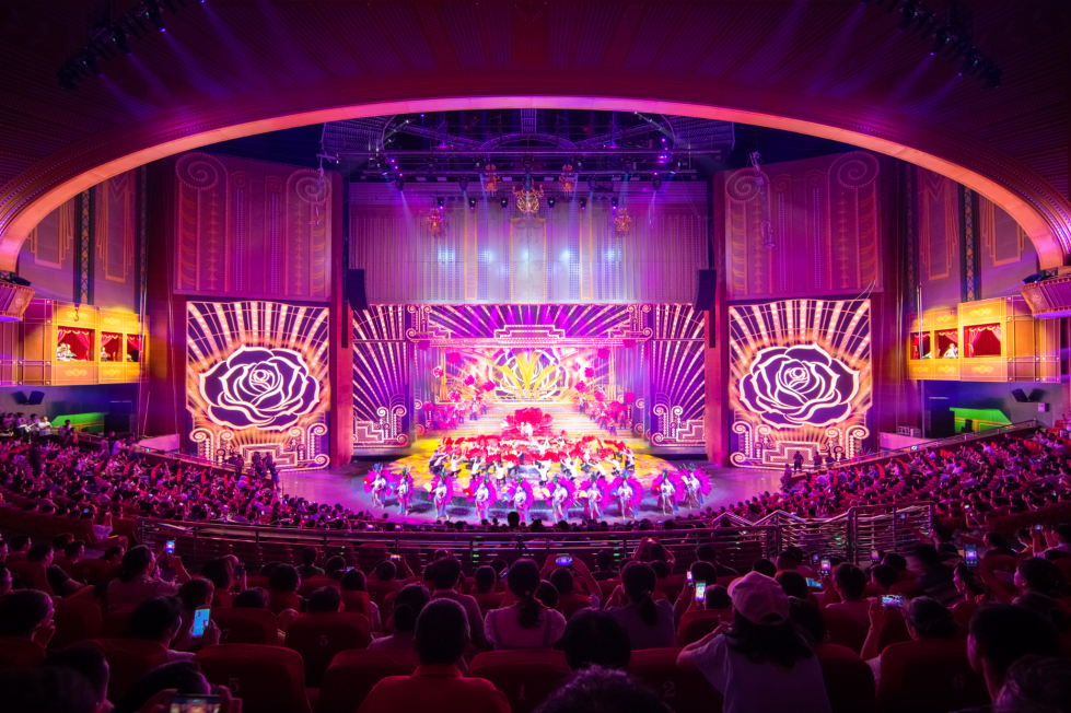 通过行进式的表演,带领观众穿越时空,体验上世纪三四十年代老上海的多样文化。这台演艺秀设有三个表演厅,每个表演厅都独具特色。第一、第二表演厅再现了石库门、码头的实景,而第三表演厅则是华丽的百乐门歌舞厅。在这里,观众可以欣赏到精彩的歌舞秀和大型水舞秀,感受老上海歌舞娱乐业的繁华与魅力。