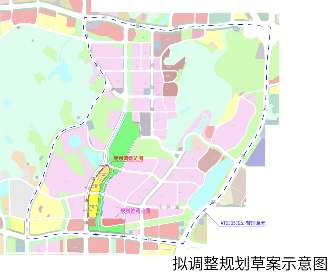 今天,智慧城核心区又冒出一宗宅地。官网挂出AT0305108、AT0305119地块控制性详细规划调整批前公示。