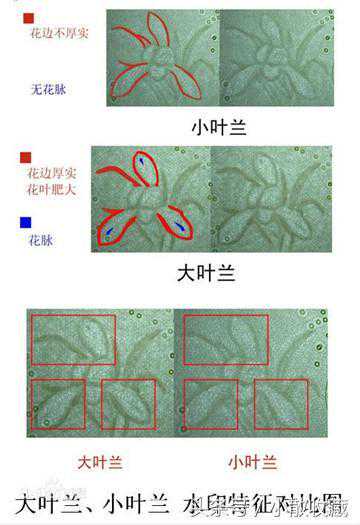 辨别大叶兰,重点辨别花卉叶片是否”大“,而不是辨别叶片是否有花脉,叶脉,更不是辨别纸张是否有荧光丝,荧光纤维,荧光多少,花脉,叶脉,荧光,均不是辨别大叶兰的依据。