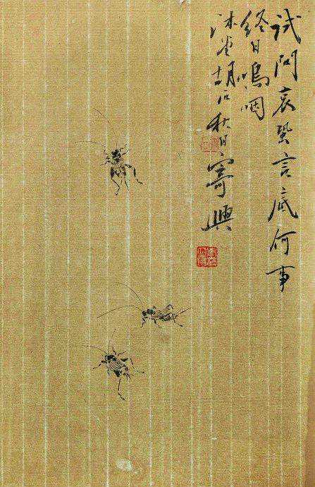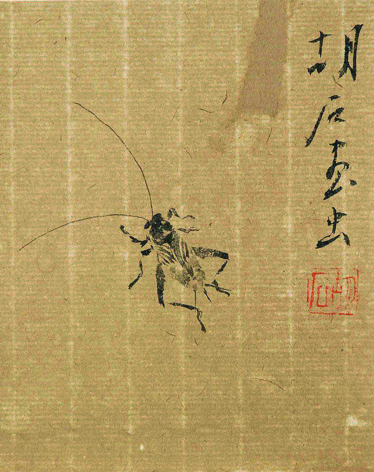 胡石笔下的昆虫,皆为有想法的昆虫,笔锋钝、健,自成风格。古人画昆虫,着力写实,而胡石的昆虫却有自我的性情,且整个画面玲珑空灵,自是鸣虫一只,却演得满台的精彩。齐白石笔下的蝈蝈充满浓郁的生活气息,朴素地和丝瓜、白菜待在一起,而胡石笔下的蝈蝈却精致、清高,自在地享乐自我的空间。