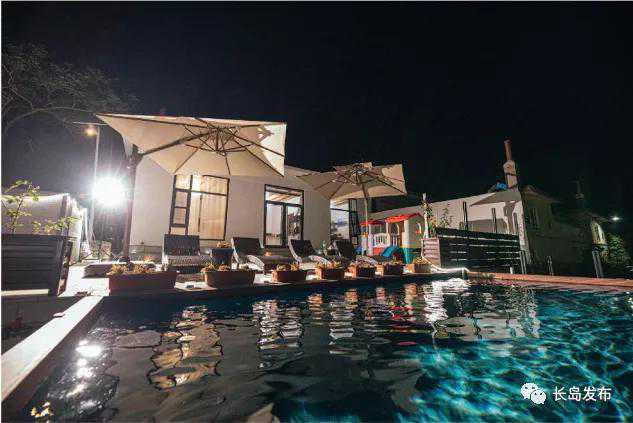 海墨民宿有个带泳池的院子是免费的公共区域,住在民宿的客人可以在院里喝着茶聊着天,看孩子们游泳、玩蹦蹦床,看日升日落,任凭海风轻拂,恍然不知梦里花落。
