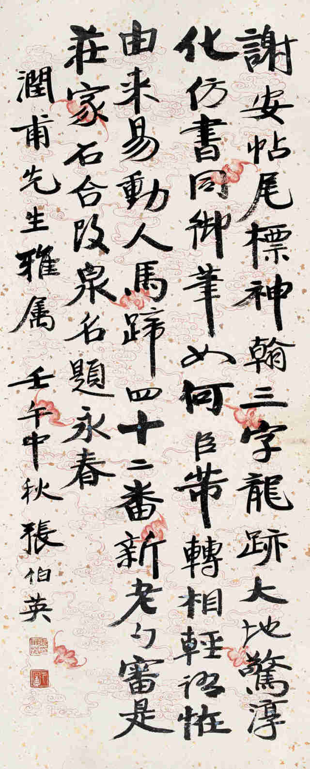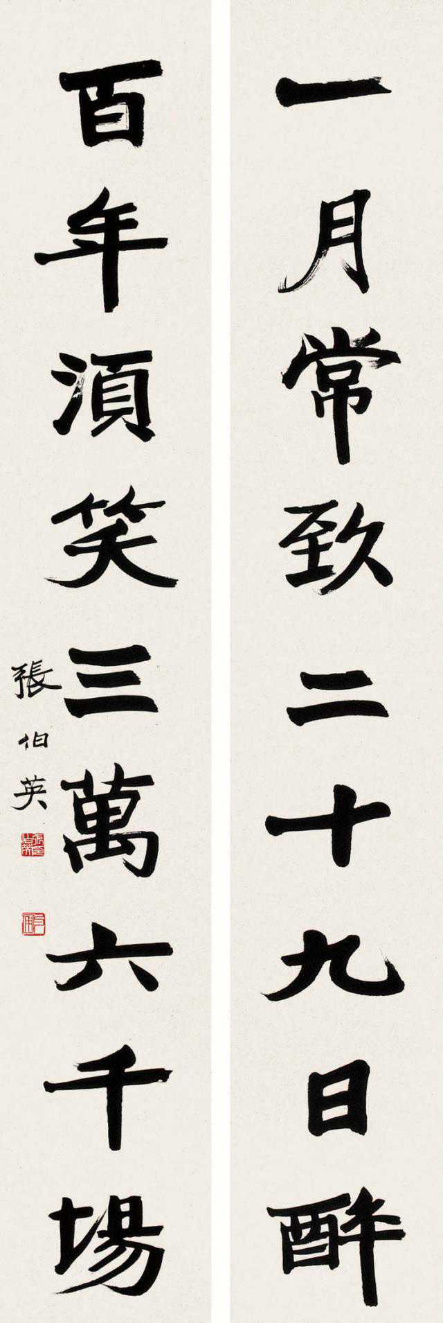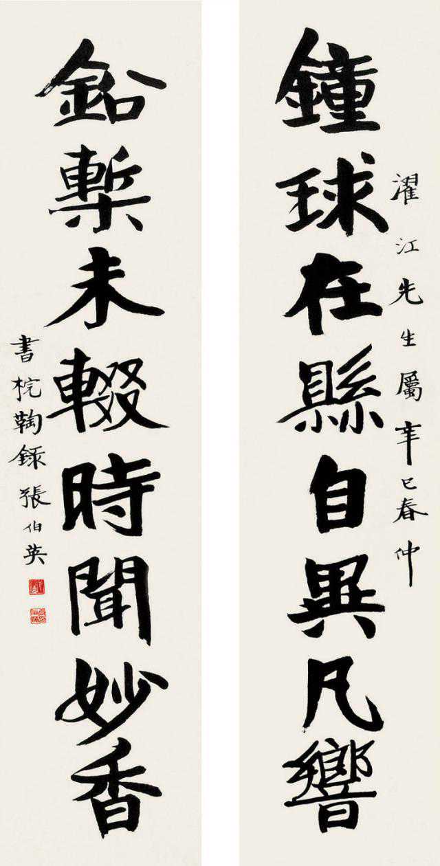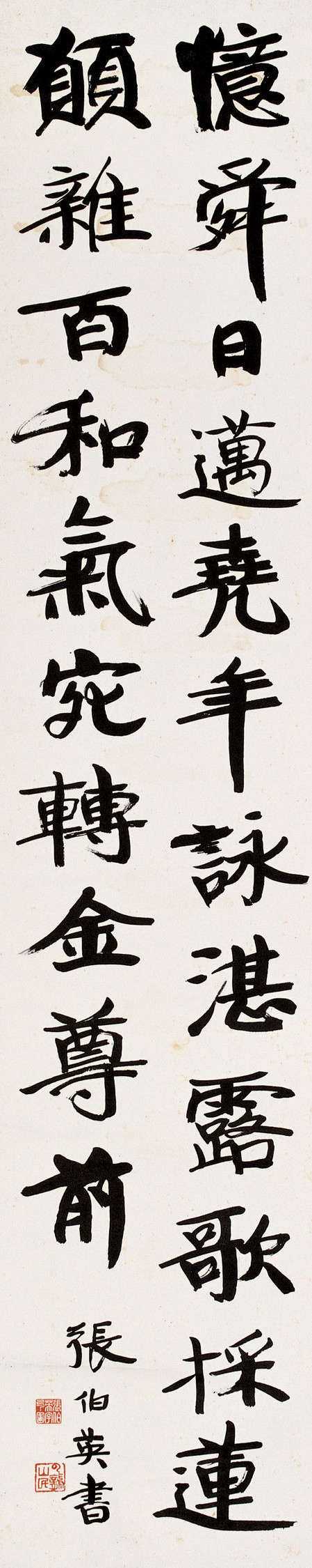 张伯英一生酷爱书法,早年从颜体入手,再学魏碑,卓然成家。明清以来徐州书法界人才辈出,形成彭城书派。彭城书派素来以北碑为宗,方劲古拙,蔚为风尚。张伯英秉承彭城书派传统,又植根汉魂而化以苏、黄,笔力凝重,楷书结构紧敛而不拘谨,字体规整端正而有洒脱之致,用笔方圆兼备,宽博雄放,紧凑严密。行书朴质秀逸,古拙自然,有夺人之效应。行草书亦能见其刚劲风骨。深厚功力出之于传统,行之于独创。遂以彭城书体名于当世,为彭城书派接武前贤之盟主。后又受康有为、包世臣等金石学派的影响,精习《张玄墓志》等北碑,骨格自然超凡拔群。