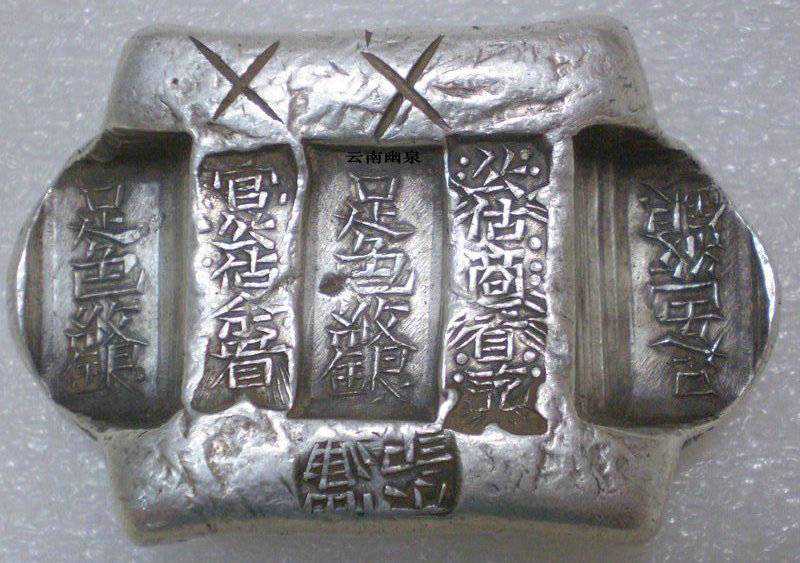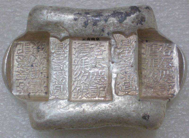 云南牌坊银锭所有系列中以“官公估佘看”最复杂,数量最多的一个系列,其中“字号”有:福兴庆记、德厚祥记、元吉祥记、裕泰庆记、裕兴佘记、福兴祥记、德昌刘记、德昌隆记等,民国年造,足色纹银等等加字不加,还有拾両圆银锭多种,初步计算应该是20枚以上。