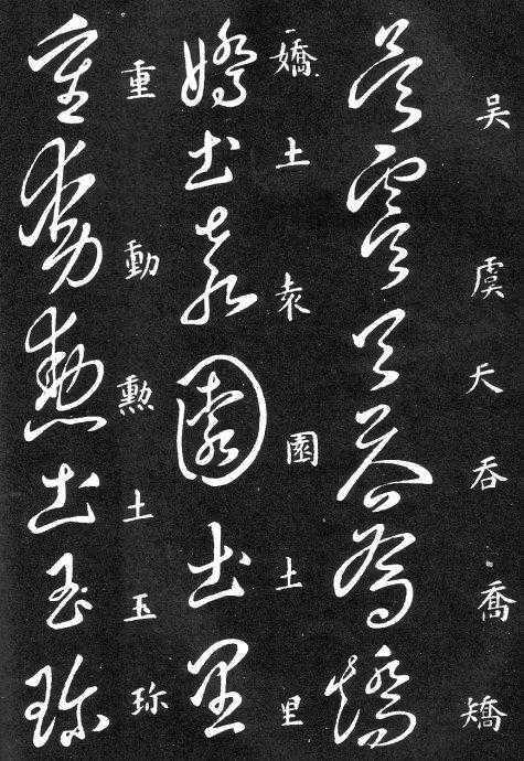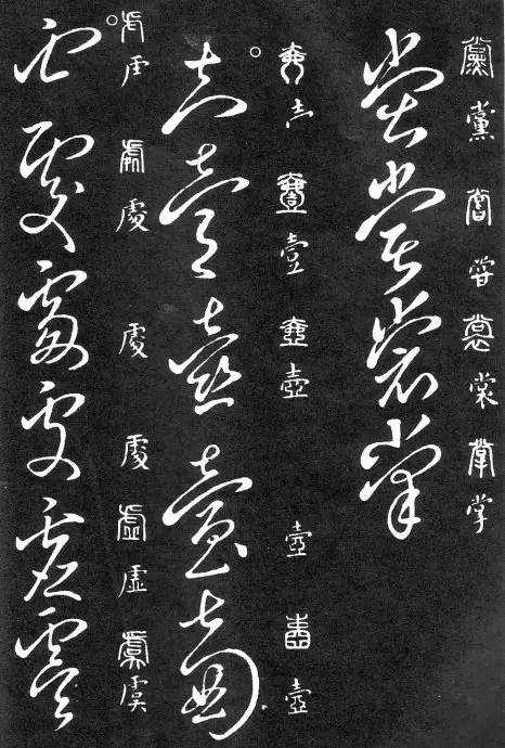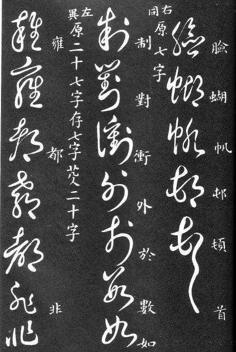 到唐朝时,草书成为一种书法艺术,因此演变成为“狂草”,作为传递信息工具的功能已经减弱,成为一种艺术作品,讲究间架、纸的黑白布置,是否让人能认清写的是什么已经不重要了。在狂草中,有“词联”符号,就是把两个字(常见词组)写成一个符号。由于当时书写多是从上到下地竖行书写,词联符号的设计也类似。“顿首”“涅盘”等都有草书词联符号。