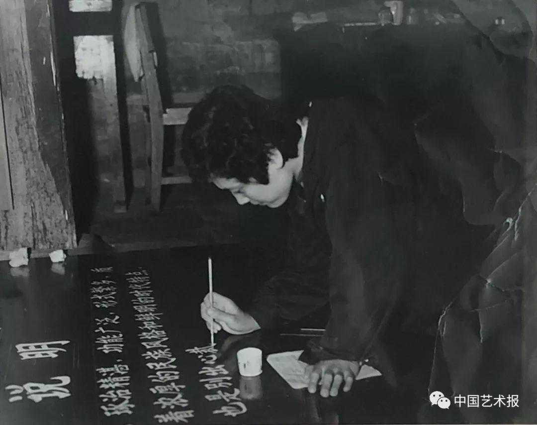1986年,董正贺用广告粉在木板上书写故宫历代艺术馆说明