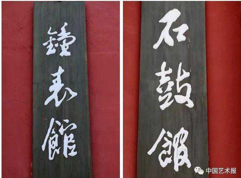 由董正贺题写的故宫钟表馆、石鼓馆