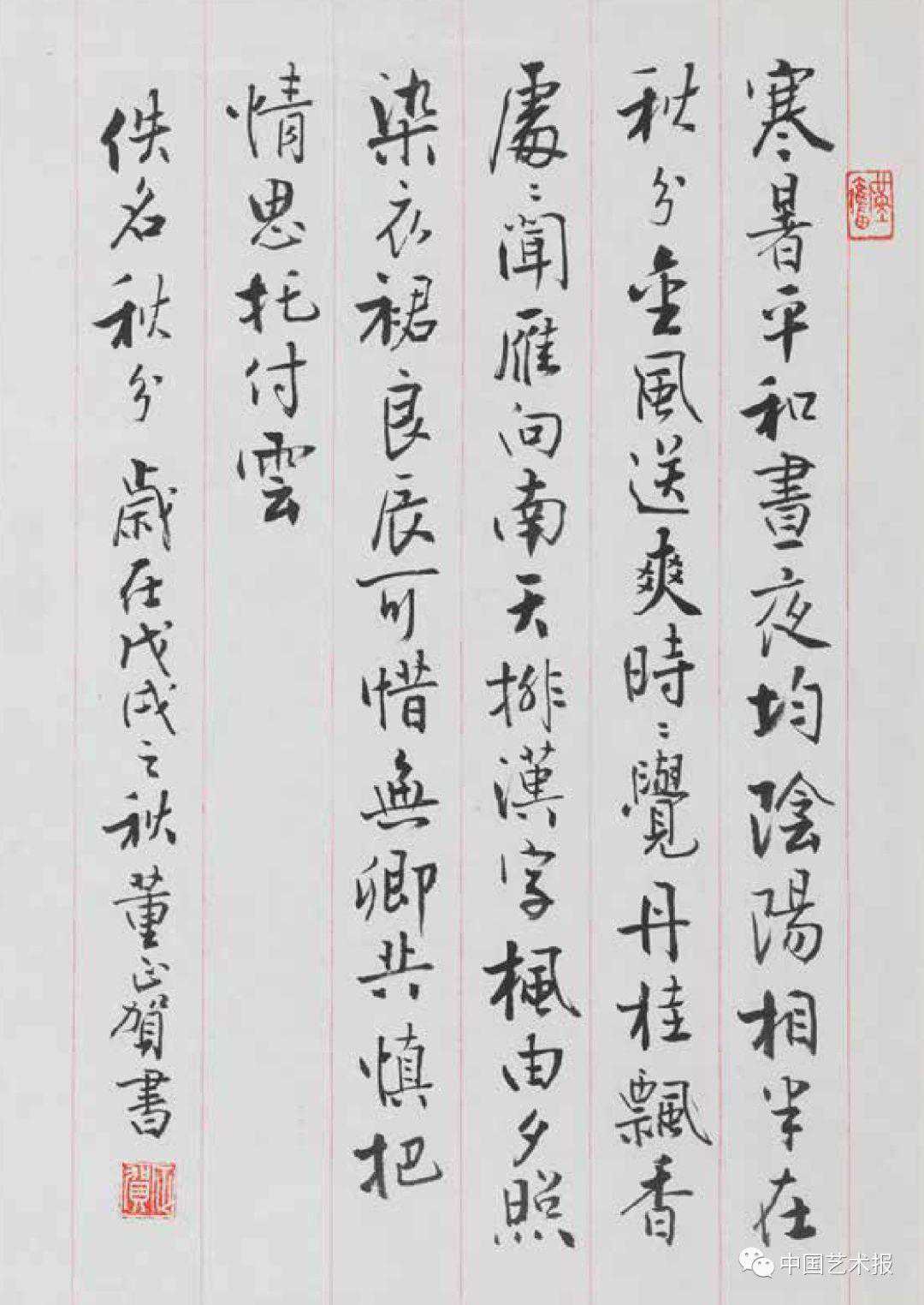 感叹一生潜心书法创作的董正贺是“新时代中国工匠精神的践行者”的同时,闫宏彬也深深感动于其为书法艺术传承的付出。“退休后董正贺作为专家返聘于故宫博物院展览部,继续承接书法研究、鉴赏、写作等工作,同时也热心投身于中国书法教育与传承中,院内的志愿者培训、书法宣传教育等活动里总有她的身影。”