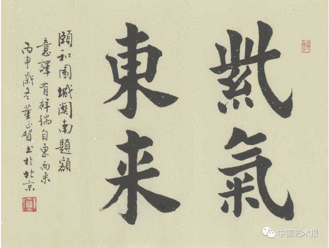 1976年,她又被调入展览部美工组,接手金石大家金禹民先生职位,逐渐走上专职的书写工作。40余年来,馆名、指示牌、展览介绍、楹联等,故宫处处可见她的字。故宫景仁榜是其代表作,故宫钟表馆、石鼓馆、书画馆等匾额,以及“国家图书馆”匾额亦为她追摩郭沫若先生书风写就。同时,颐和园诸多匾额、楹联,杭州罗汉堂匾额、杭州西湖三潭印月楹联等,董正贺书法艺术频现于大众视野。