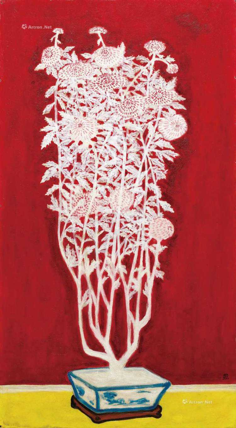常玉《青花盆中盛开的菊花》