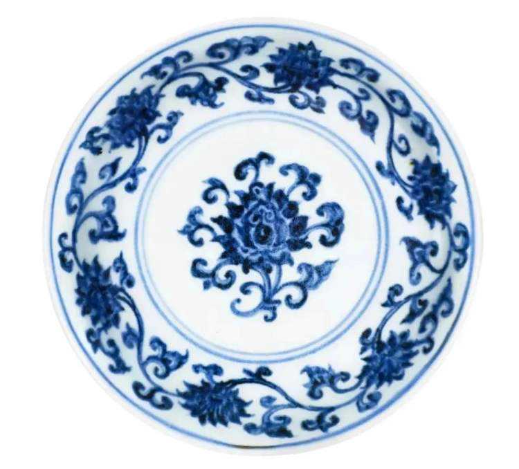 明宣德青花番莲纹小盘《大明宣德年制》款15.3cm