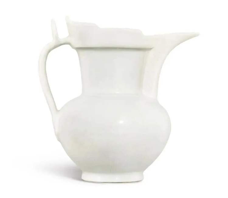 明永乐甜白釉暗花缠枝莲八吉祥纹僧帽壶19.5cm