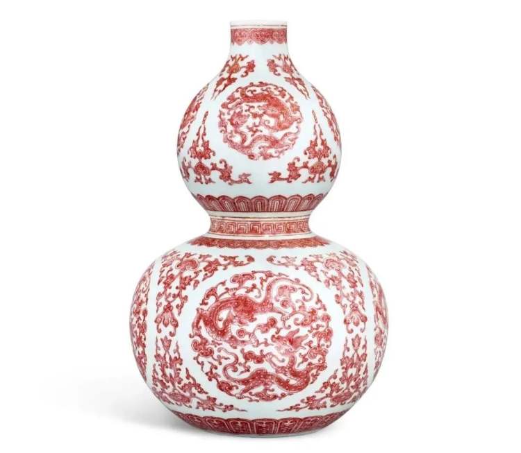 清乾隆釉里红螭龙灵芝葫芦瓶