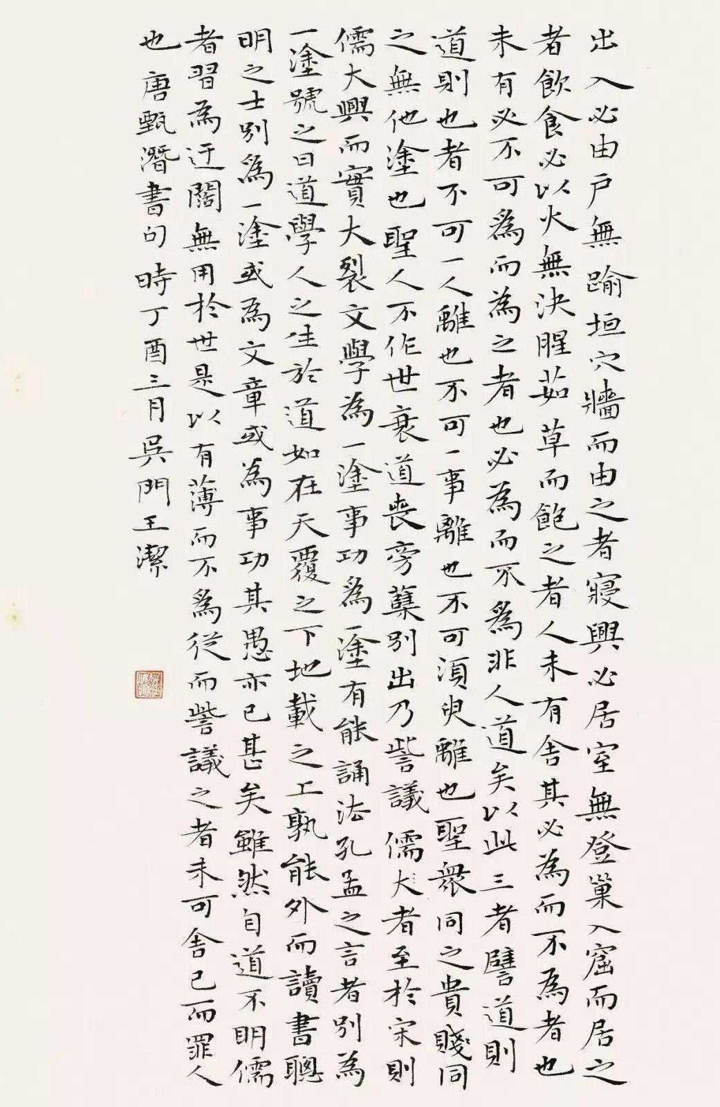 诸如上面的这幅小楷作品,整体上的感觉就是非常飘逸的,这种飘逸感,着重表现在长撇大捺上,还有的表现在长横笔上,这样的点画,都十分精妙,都十分有特点,也突出了一种格调之妙,对于这样的小楷作品,岂能不心动呢?对于普通人来说,什么样的小楷是好?什么样的小楷是精妙,相信,朋友们都有自己的判断标准,不排斥,想看,就是一种美,这也是最为直接的感受,不是吗?