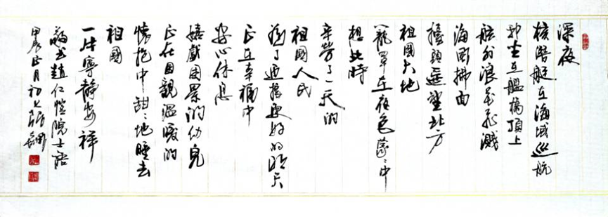 科海抢潮头。挥“乐凯”,畅竞五洲。柔情炽爱追“国产”,百帆催进,争先领渡,必我龙舟!