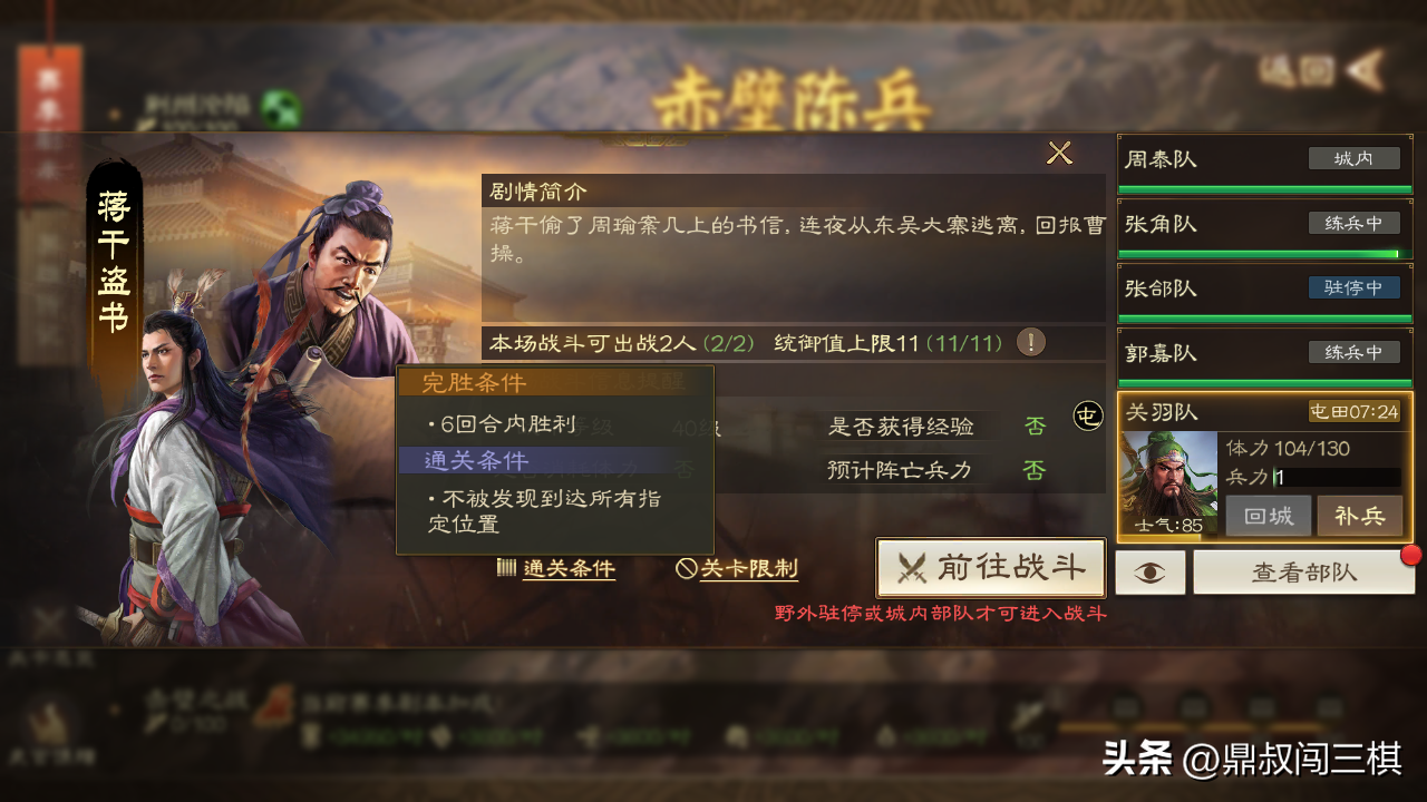 「条件一」上阵武将:2名;