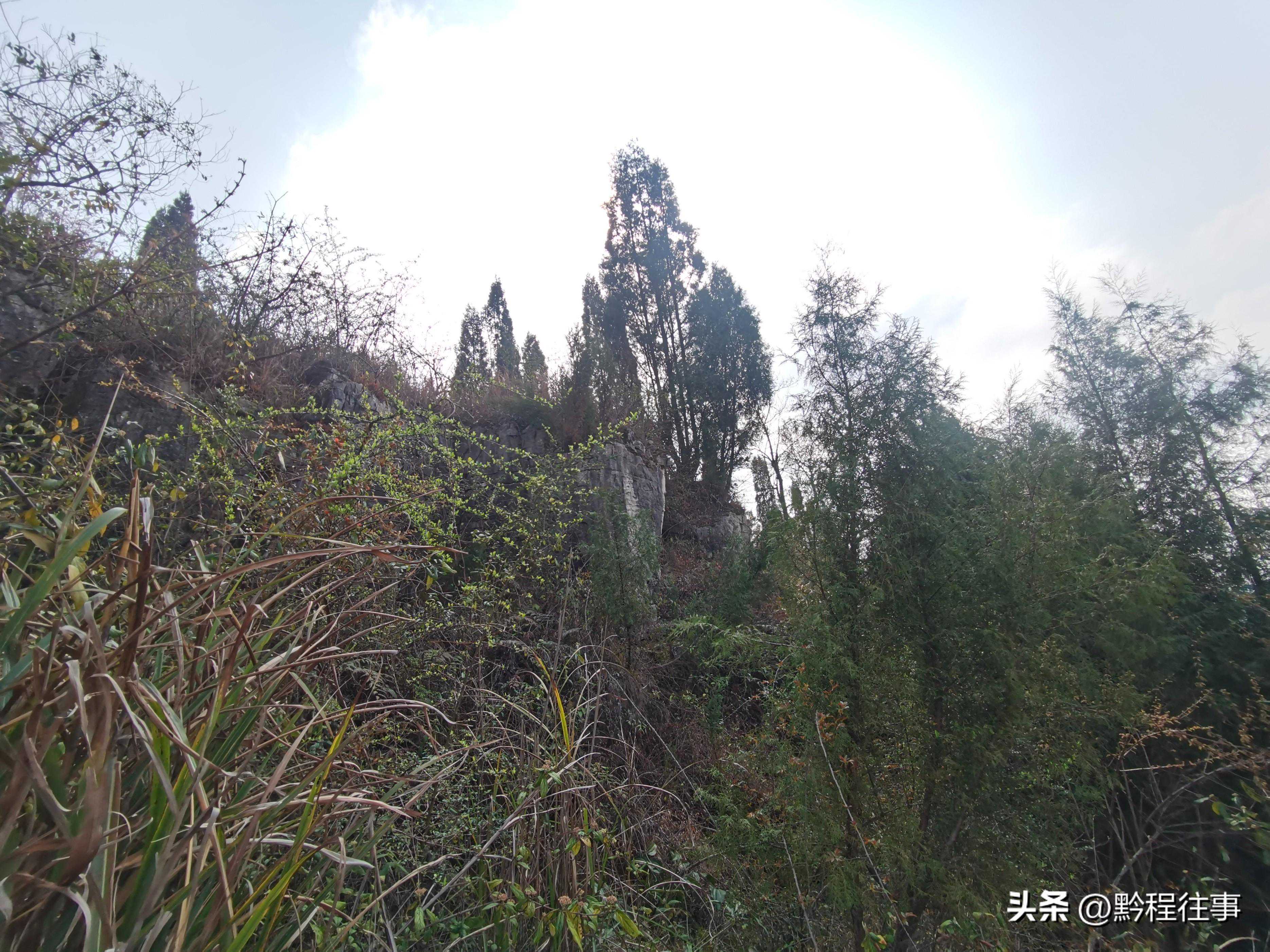 老人说:山腰处共有两幅崖刻,是民国时期织金县xian长刻的,不过如今树林太密了,估计走不通呢,你可以把车停在前面房屋处。