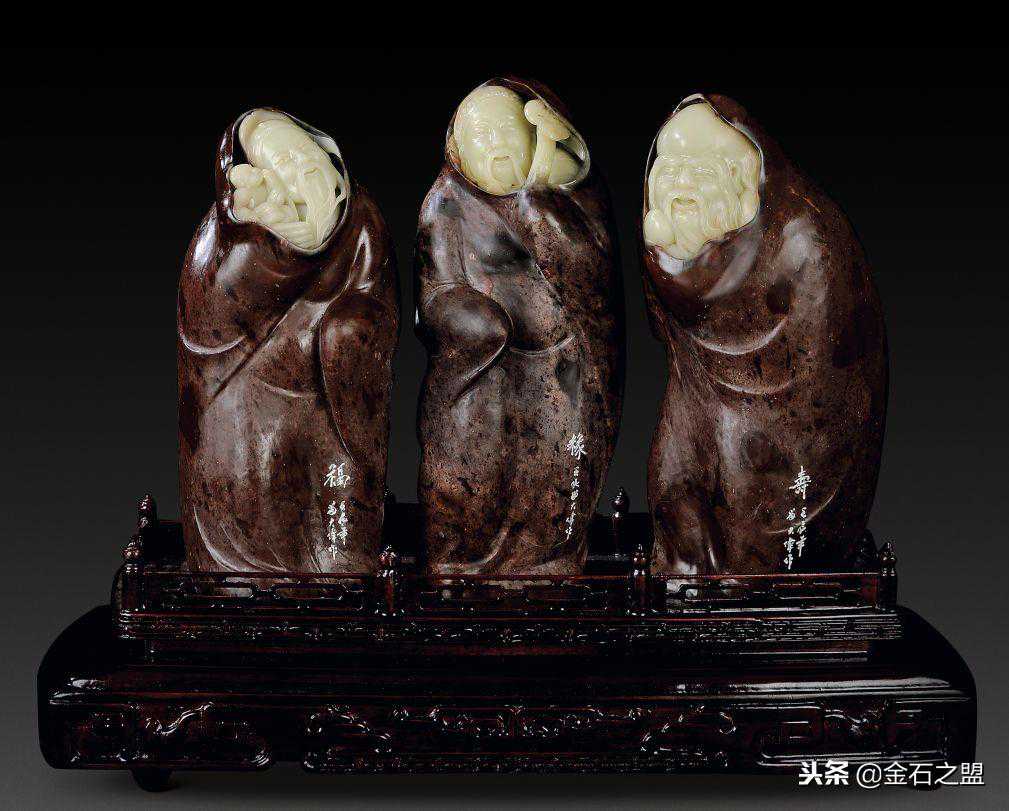 东方国石馆藏青田石雕作品:留大伟《福禄寿》