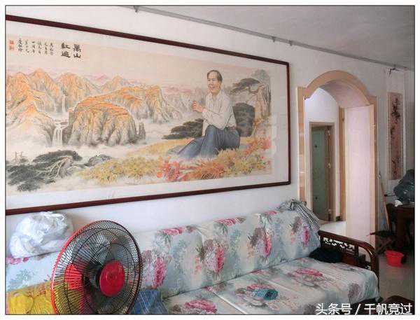 霍老客厅里悬挂着他创作的毛泽东主席的画像