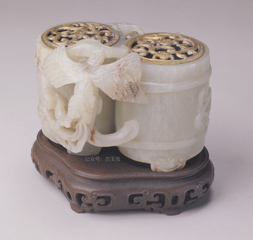 明青白玉夔凤纹子刚款樽