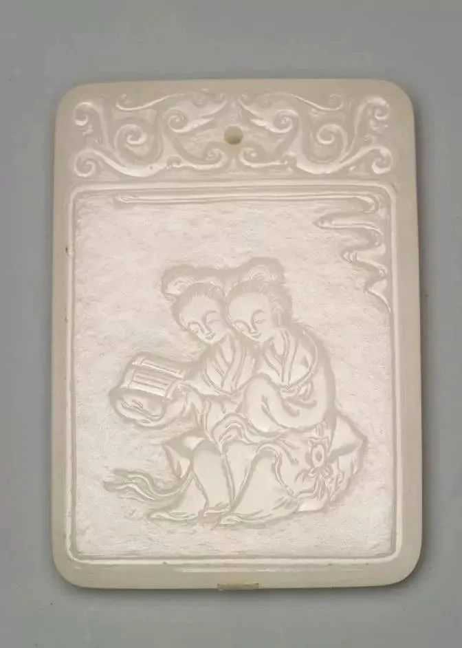 明“子冈”款白玉二乔观书牌
