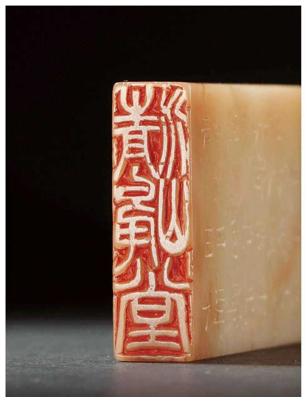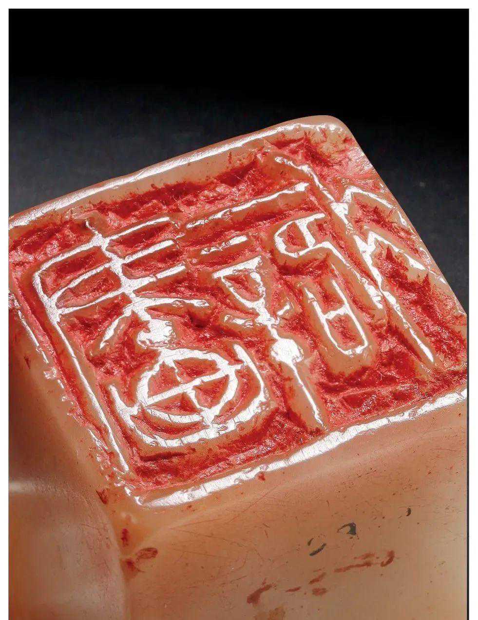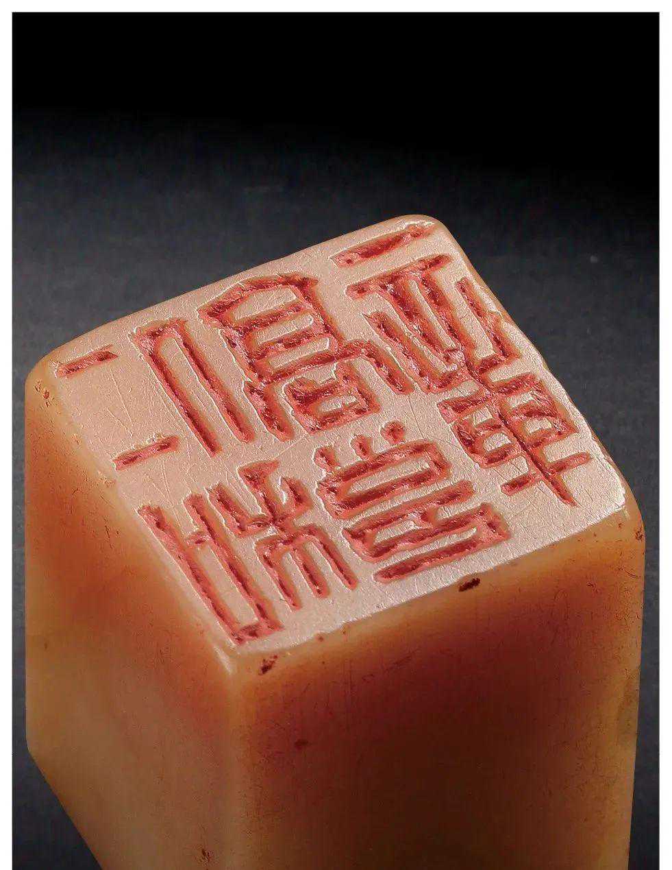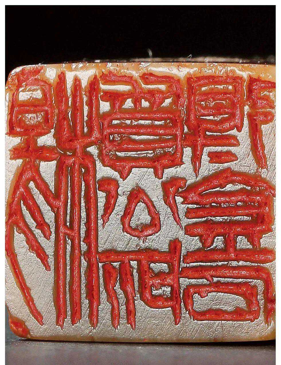 杨质公所得金石拟汉凿印寄质公一笑。辛卯六月,昌硕吴俊。2.10cm×2.20cm昌化石