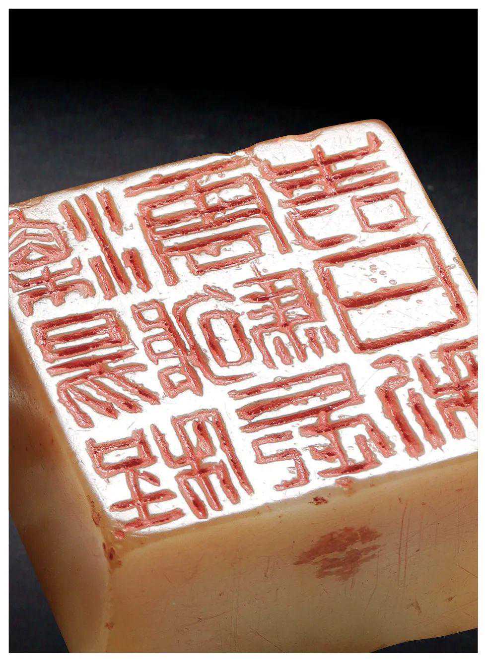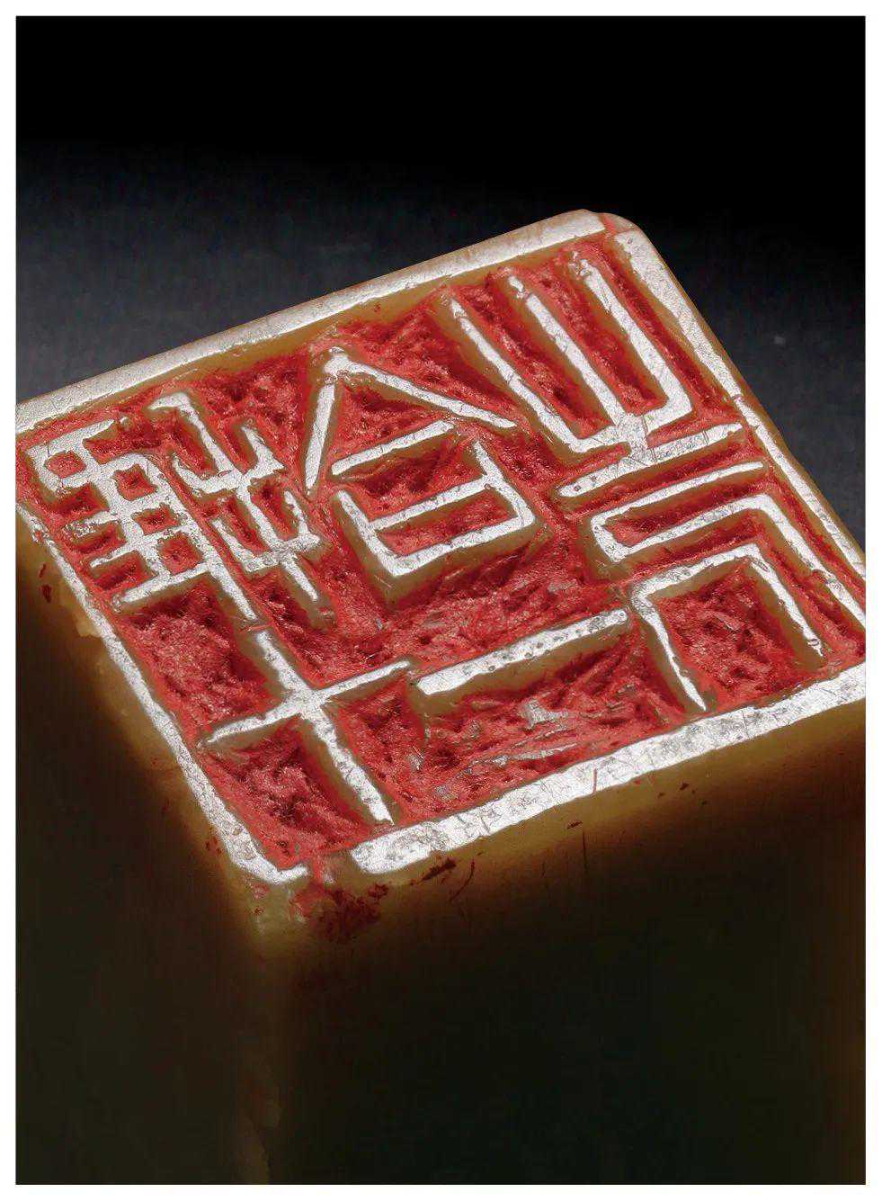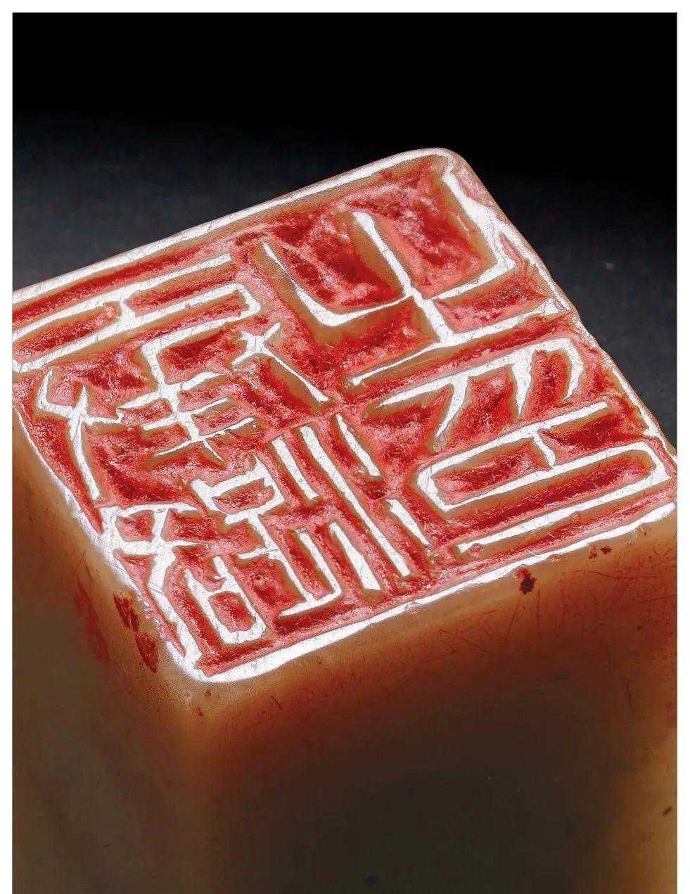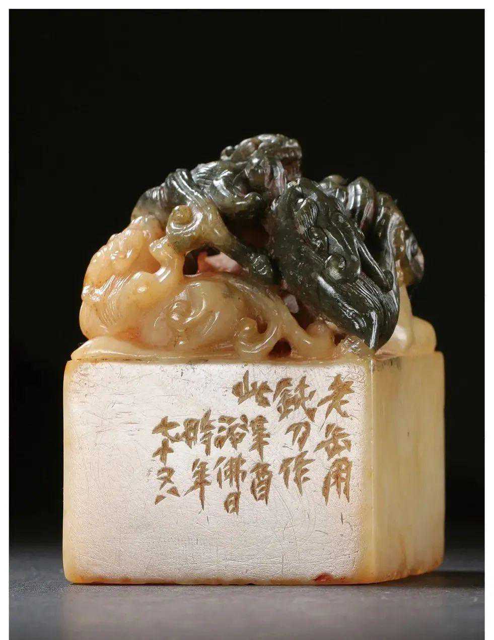杨质公所得金石拟汉凿印寄质公一笑。辛卯六月,昌硕吴俊。2.10cm×2.20cm昌化石