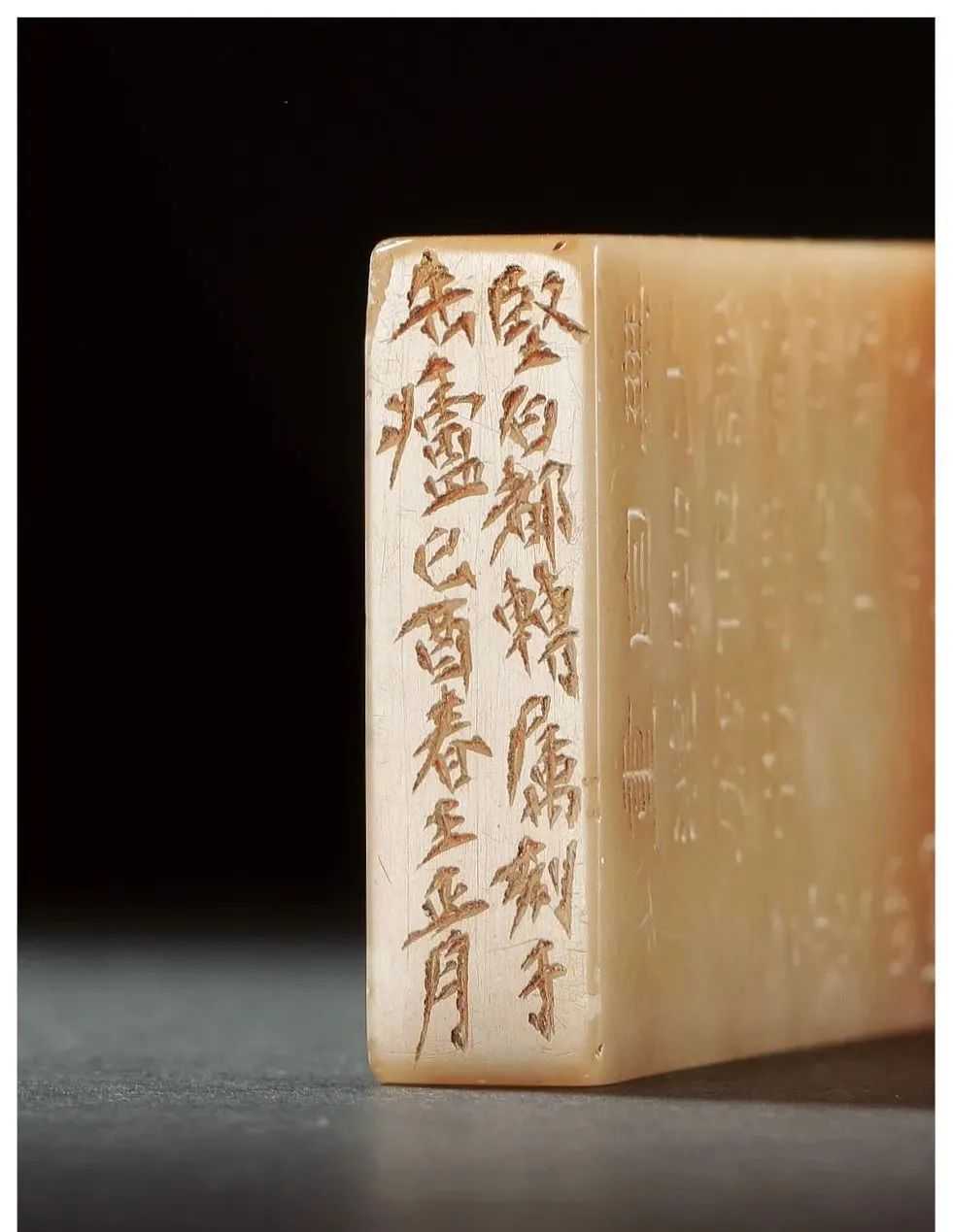 清峻堂坚白都转属刻于缶庐,己酉春王正月。3.80cm×1.10cm寿山石