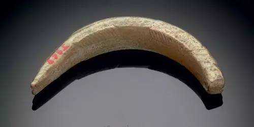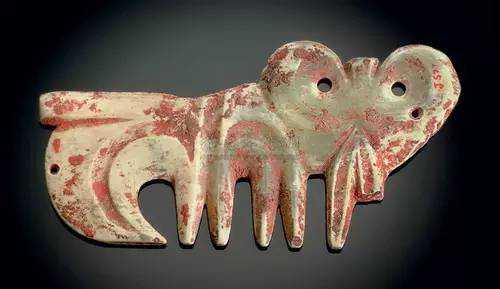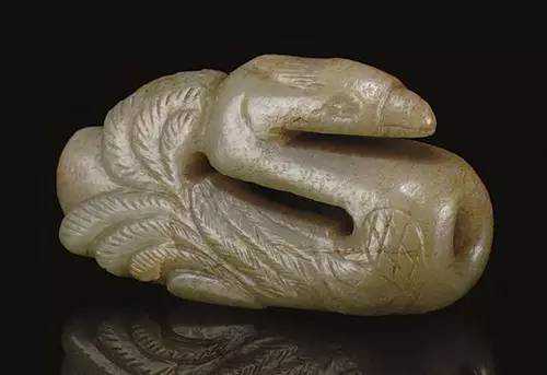 NY佳士得2010年秋季拍卖会,赛克勒藏中国艺术品。年代:NEOLITHICPERIOD,HONGSHANCULTURE,CIRCA3500-3000。尺寸:长8.9cm。估价:USD30,000-50,000。成交价:。