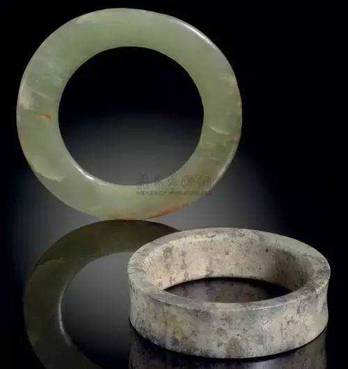 NY佳士得2010年秋季拍卖会,赛克勒藏中国艺术品。年代:NEOLITHICPERIOD,LONGSHANCULTURE,CIRCA2000BC。尺寸:直径10.4cm;直径8.3cm。估价:USD6,000-8,000。成交价:。