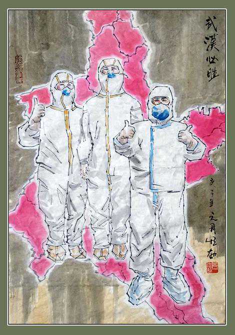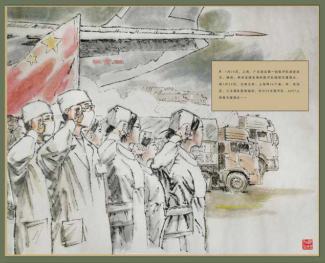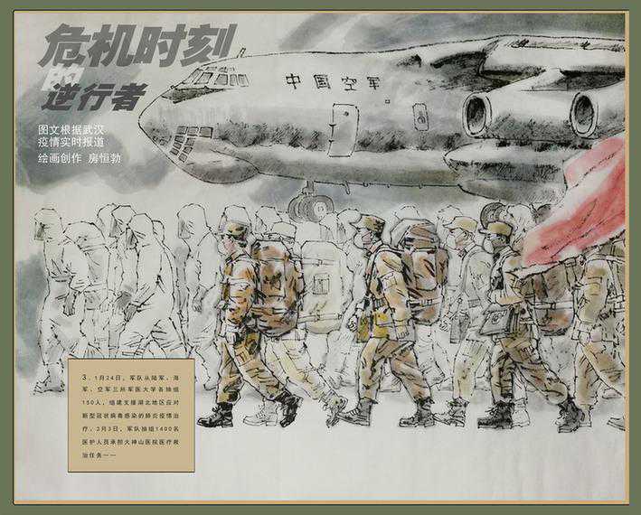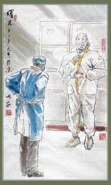 医护人员身着厚重的防护服,却能快步疾行,只是为了患者能早日无恙。他们经常日夜相继,有时只能和衣斜躺,小憩后又精神抖擞地去守护别人的安康。当著名画家房恒勃看到这一幕幕景象,便决意用手中的画笔记录下医护人员义无反顾踏上前线征程的样子,忙碌、紧张地救治病患的样子,互相鼓舞、打气的样子无论你们是哪种样子,在全国人民的眼中都是最美的样子!