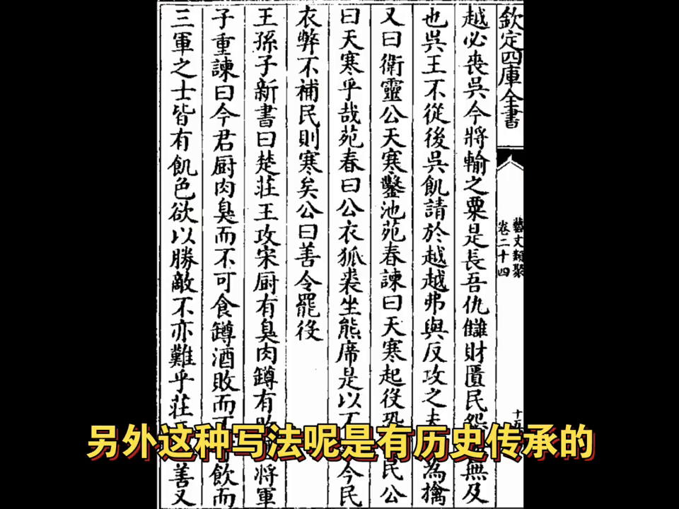 另外这种写法是有历史传承的,在欧阳询负责编纂的一文类句里有这么一条,说当年楚庄王恭送,然后有人跑过来劝谏他,说你家厨肉臭而不可食,尊酒败而不可饮,但是三军之士皆有饥色,在这种情况下打仗怎么可能赢?