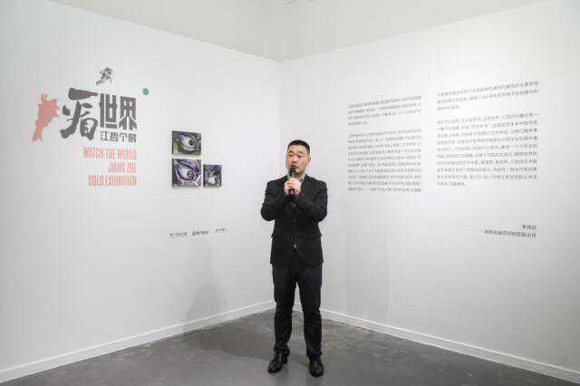最后,湖南省画院名誉院长、本次展览的学术顾问刘云宣布《看世界》江哲个展正式开幕。