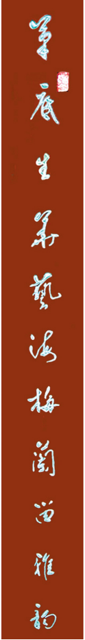 释读:上联既是称赞王雪涛的画作,又是称赞王雪涛的人品,梅花、兰花既是王雪涛笔下的画作,又是他人格魅力的体现。下联谓王雪涛的艺术影响力,"画坛桃李"是指王雪涛的学生众多,其门下弟子萧朗、和芝圃、赵鸿月、李承毅、温瑛、刘继瑛、金默如、萧焕儒、王培东、何涵宇、李赞周、曹国鉴等人均非常出众。