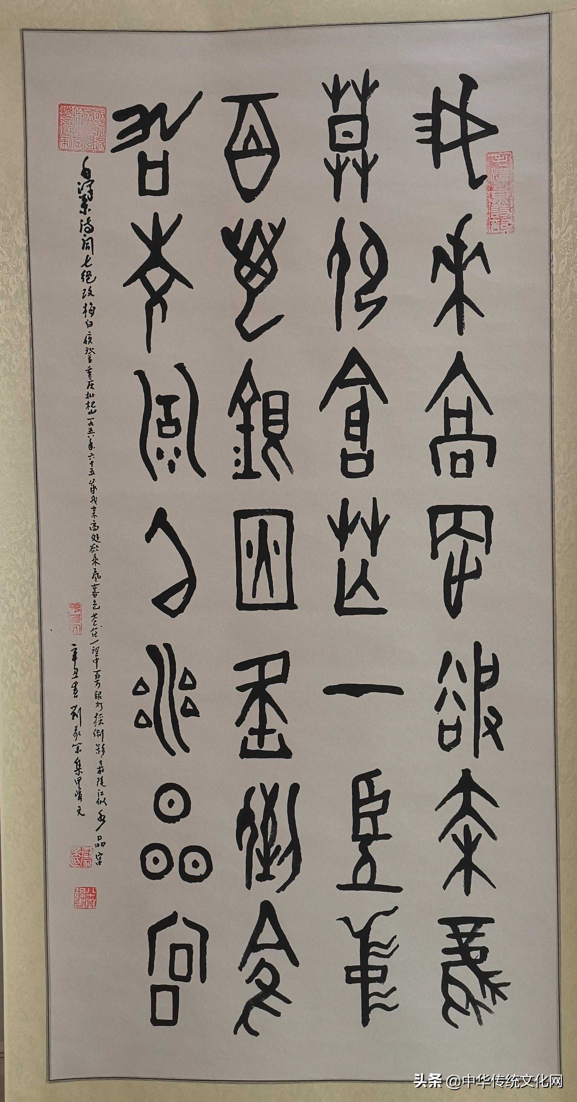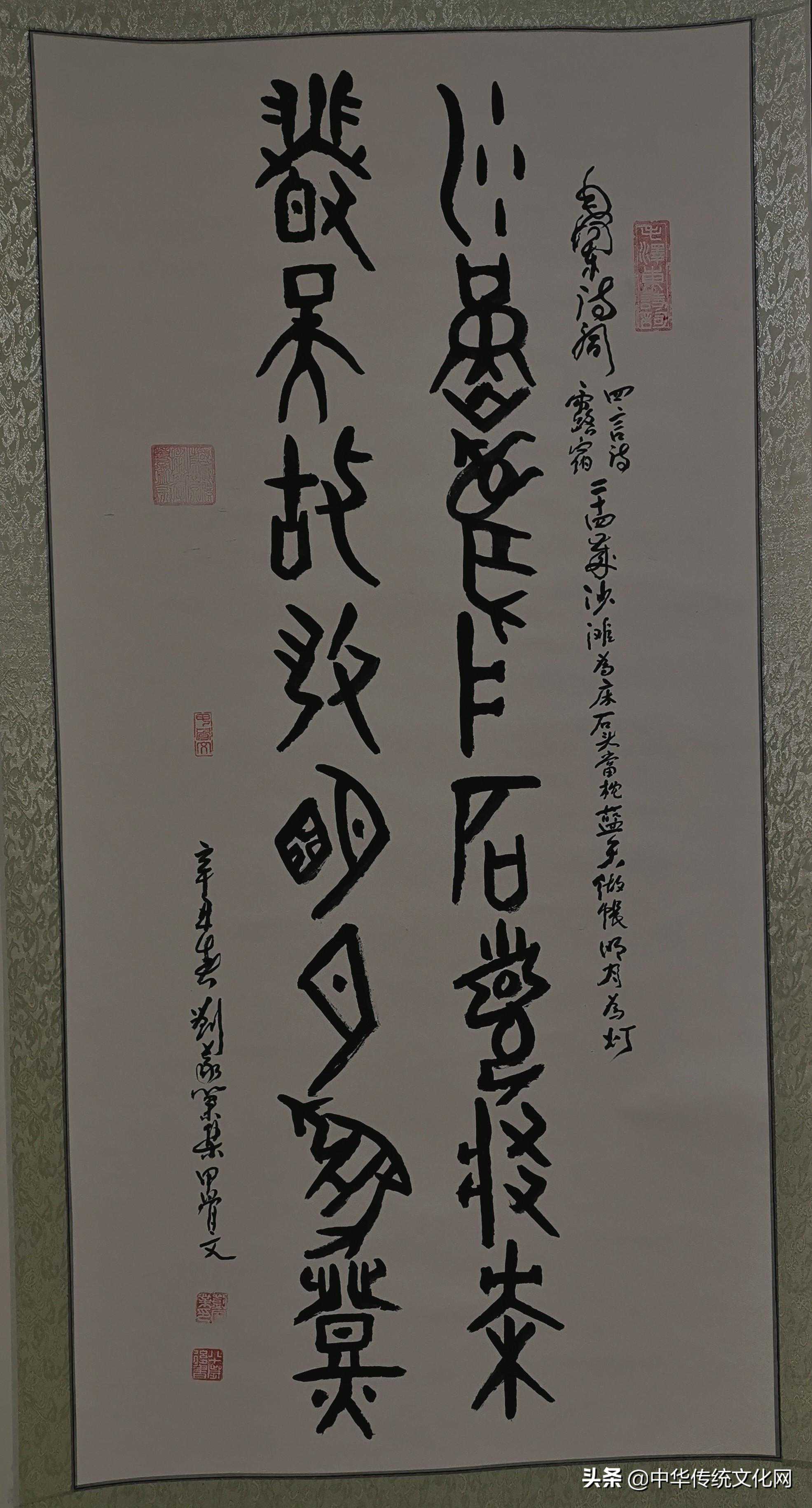 刘家业先生戎马一生,胸融山川,老当益壮,壮志凌云,奋勇前进。刘老用时半年将主席用典全部用甲骨文书写下来,表达了老教授对国家的感恩和赞美。