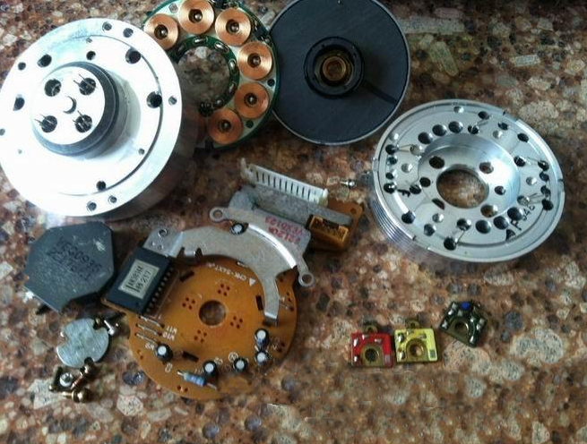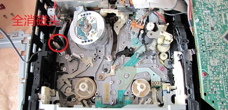 把机芯从底盘内整体提出,拔掉磁头放大电路板的14针(线)插件和磁鼓电路板10针(8线)插件,再拔掉FG放大电路板(18针至主板)FPC和机械电路板(15针至主板)FPC后,机芯总成即可完全与底盘脱离,单独进行机芯维修很是方便。